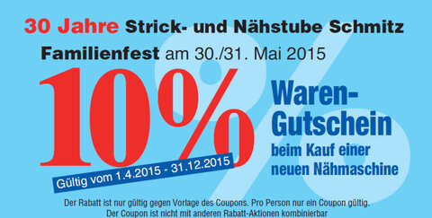27.05.2015: Rabatt zum Familienfest bei der Strick- und Nähstube