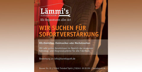 Lämmi´s Schraubstation sucht so schnel wie möglich Verstärkung mit sehr guten Kenntnissen im Bereich der modernen Fahrzeug- und Diagnosesysteme für alle Fabrikate.
