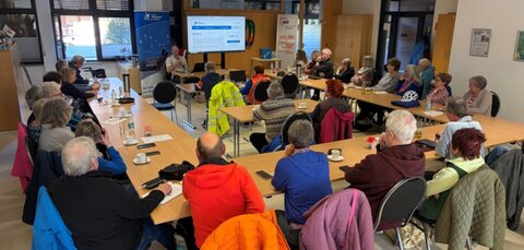 Im direkten Anschluss an die Präsentation hatten die Gäste Gelegenheit, die unterschiedlichen Services direkt am eigenen Gerät auszuprobieren und individuelle Fragen zu stellen. Einige brachten ihre Laptops, Tablets oder Smartphones mit und nahmen die praktische Unterstützung gerne an. Besonders Einsteiger*innen nutzten die Möglichkeit, sich Schritt für Schritt in die Anwendungen einzuarbeiten.