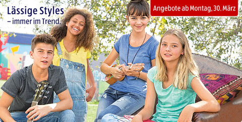 Lässige Styles für Teens Trendiges wie Shirts, Jeans oder Sneaker & Nützliches für die Reise gibt es ab 30.03. bei Aldi auf der KÖ69-81.