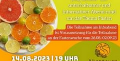 Nach dem Infoabend findet vom 26.08.-02.09.23 die Leicht & Fit in den Herbst-Fastenwoche im Familienzentrum am Krausacker statt. Voraussetzung für die Teilnahme an der Fastenwoche ist die Teilnahme am Infoabend.