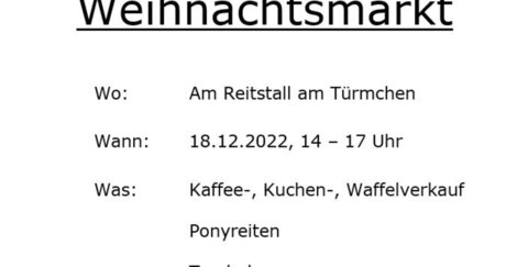 Es erwartet Euch ein tolles Programm mit Tombola, Ponyreiten, Fotos mit dem Weihnachtspony und vielen Köstlichkeiten im Reitstall am Türmchen.