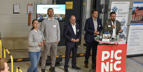 Der für die Last-Mile-Distribution in Troisdorf, Hennef, Bornheim und Mülheim-Kärlich zuständige Picnic-Regionalleiter Konstantin Düngen und Standortleiterin Luisa True stellten den Standort und das Unternehmen dahinter am Donnerstag, 6. November, bei einem Unternehmerfrühstück des Unternehmerclubs pro Troisdorf und der Wirtschaftsförderungsgesellschaft TROWISTA vor. Rund 120 Gäste und Bürgermeister Alexander Biber verfolgten interessiert den vom pro Troisdorf-Vorstandsvorsitzenden Christian Seigerschmidt und TROWISTA-Geschäftsführer Alexander Miller moderierten Info- und Netzwerk-Termin.